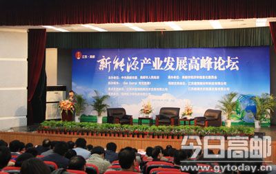 2011年4月14日上午,第七屆中國(guó)雙黃鴨蛋節(jié)暨撤縣設(shè)市20周年慶典活動(dòng)重頭戲之一——新能源產(chǎn)業(yè)發(fā)展高峰論壇在高郵會(huì)議中心召開。丁一、夏正祥等高郵市領(lǐng)導(dǎo)出席活動(dòng)。中國(guó)可再生能源學(xué)會(huì)光伏專業(yè)委員會(huì)主任、太陽(yáng)能電池領(lǐng)域著名專家趙玉文,聯(lián)合國(guó)太陽(yáng)能中心主任、著名太陽(yáng)能情報(bào)專家喜文華,與高郵市部分黨政干部及數(shù)十家市內(nèi)外新能源企業(yè)共赴高峰論壇,共享陽(yáng)光盛宴,共謀產(chǎn)業(yè)新發(fā)展。
