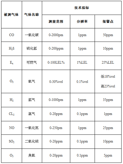 便攜式單一氣體檢測儀技術(shù)參數(shù)