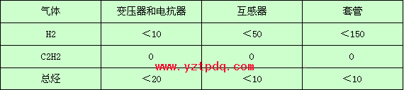 表2-2 對(duì)出廠和新投運(yùn)的設(shè)備氣體含量的要求