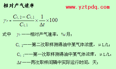 實(shí)踐證明,故障的發(fā)展過(guò)程是一個(gè)漸進(jìn)的過(guò)程,僅由對(duì)油中溶解的氣體含量分析結(jié)果的絕對(duì)值很難確定故障的存在和嚴(yán)重程度。因此,為了及時(shí)發(fā)現(xiàn)雖未達(dá)到氣體含量的注意值,但卻有較快的增長(zhǎng)速率的低能量潛伏性故障,還必須考慮故障部位的產(chǎn)氣速率。