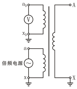 倍頻感應耐壓試驗接線如圖上所示,在二次繞組ax側(cè)施加倍頻電壓,從輔助二次繞組側(cè)測量。一次繞組試驗電壓按出廠電壓的85%進行試驗,出廠值不明的按表1-1所示試驗電壓進行試驗。倍頻感應耐壓試驗電壓同工頻交流耐壓試驗的試驗電壓。