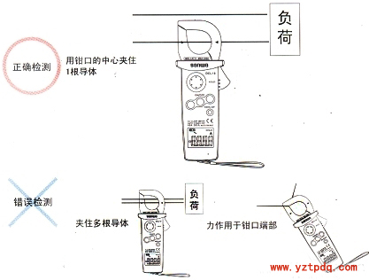 鉗形表每次只能測量一相導(dǎo)線的電流,被測導(dǎo)線應(yīng)置于鉗形窗口中央,不可以將多相導(dǎo)線都夾入窗口測量。