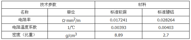 軟銅及硬鋁在20℃時的技術參數(shù)