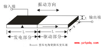 壓電陶瓷變壓器將逆壓電效應(yīng)與壓電效應(yīng)結(jié)合起來(lái),其基本原理是利用輸入交變電壓使壓電陶瓷片處在機(jī)械簡(jiǎn)諧振動(dòng)狀態(tài),再由輸出端電極利用正壓電效應(yīng)將簡(jiǎn)諧振動(dòng)的機(jī)械能換成同頻率的電能,從而完成電能一機(jī)械能一電能的能量傳遞過(guò)程。一般情況下要求輸入電壓頻率應(yīng)與壓電陶瓷的固有頻率一致,這樣瓷片會(huì)產(chǎn)生機(jī)械共振現(xiàn)象,從而能有效地傳遞能量。